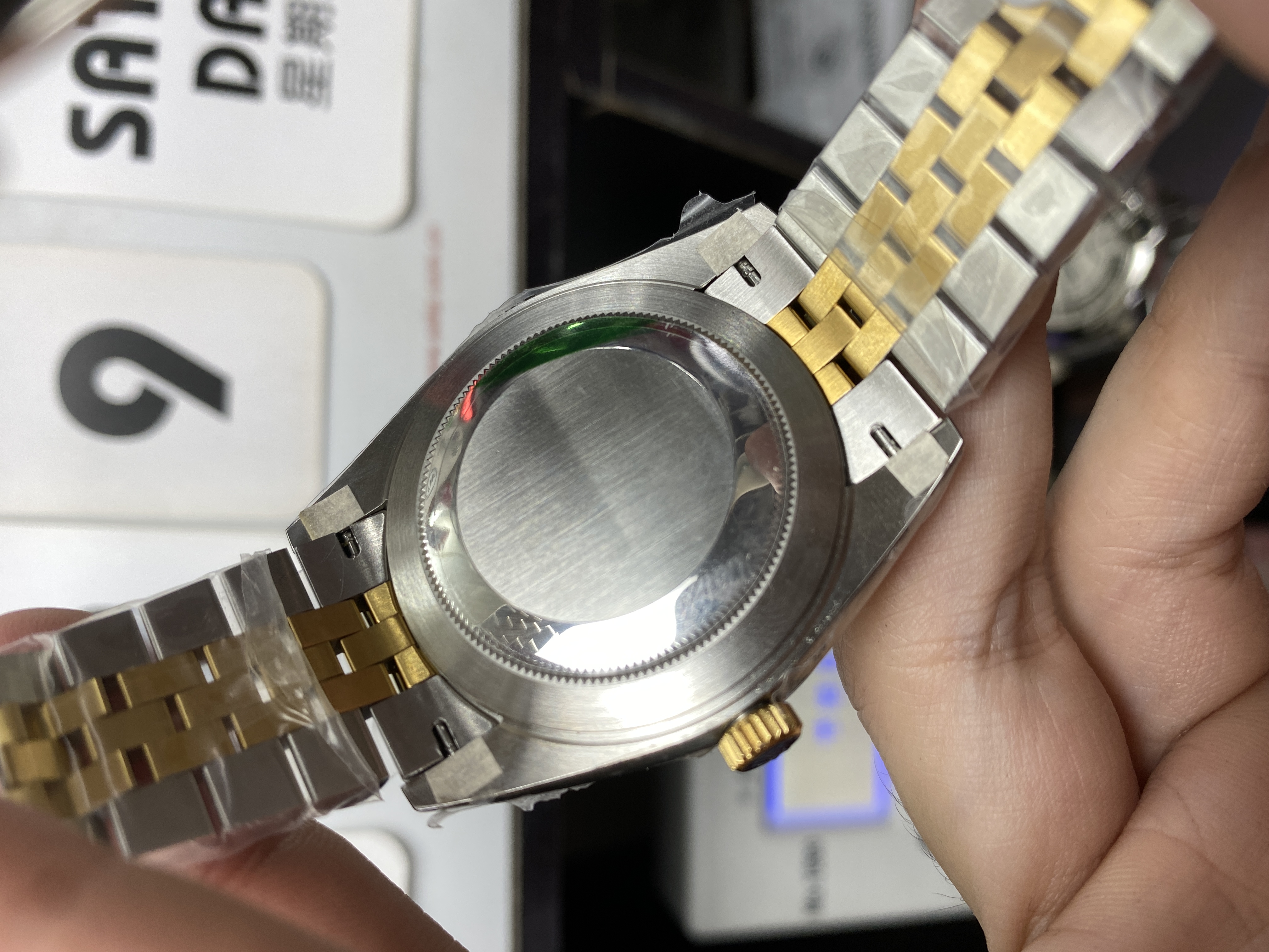 Moreover, we provide the weight and key data of the watches, and even open the back cover of the movement to show it to our customers.